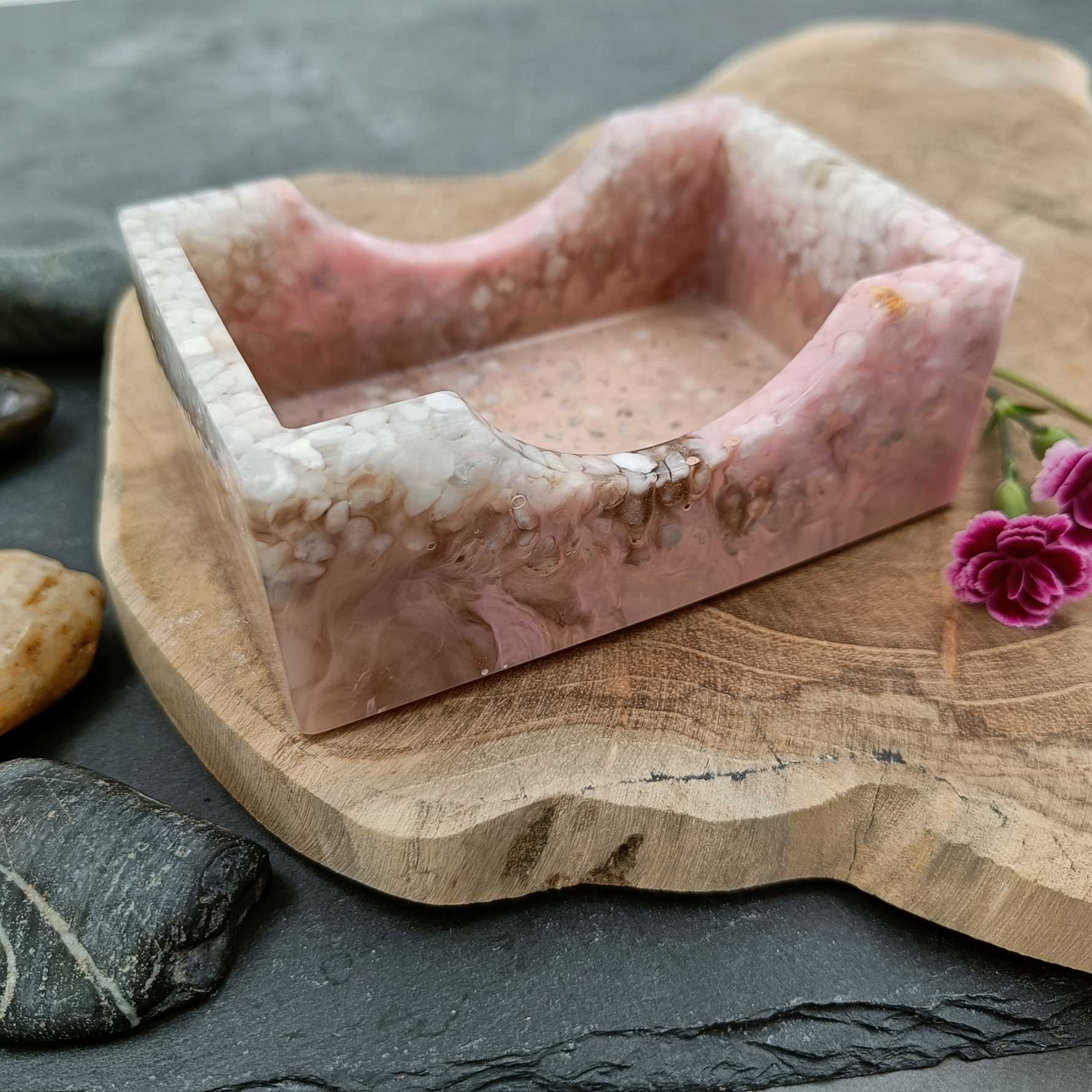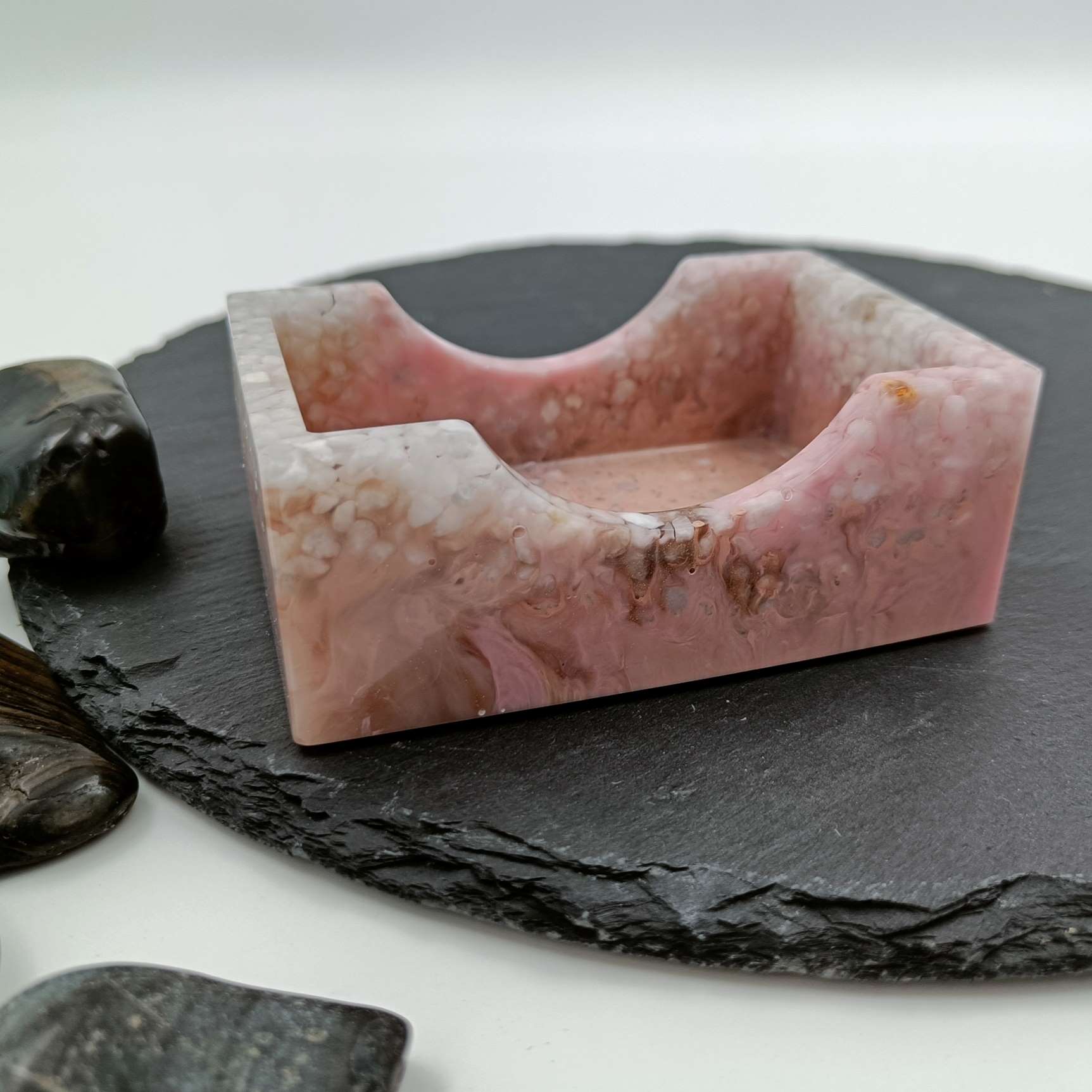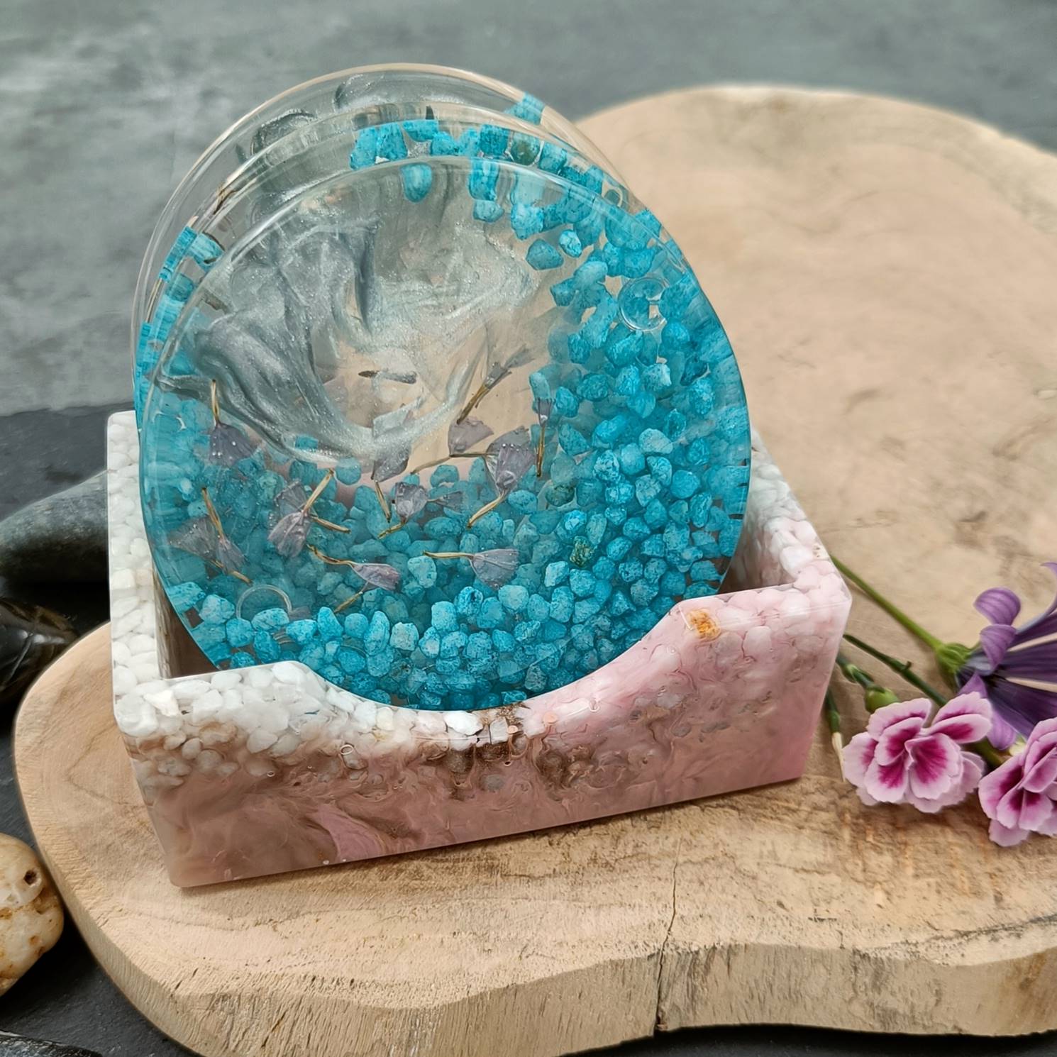 Maokan lasinalustelineissä käytetään vaihtelevasti erilaisia kiviä ja rouheita, sävyjä tummasta vaaleaan sekä kimaltelevia yksityiskohtia, jotka yhdistetään laadukkaan hartsin avulla upeaksi kiiltäväksi lopputulokseksi. Jokaisen lasinalusen pohjista löytyy pienet, kirkkaat silikonitassut, jotka ehkäisevät telineen liukumista pöytien ja tasojen päällä. Maokan neliskanttiseen lasinalustelineeseen mahtuu neljä lasinalusta säilytykseen.