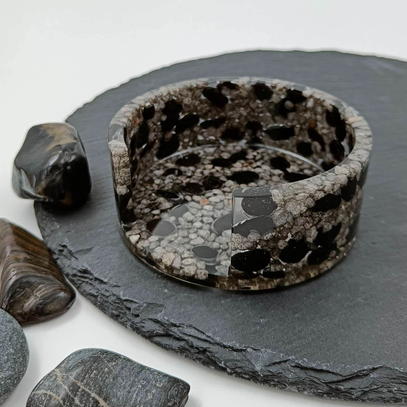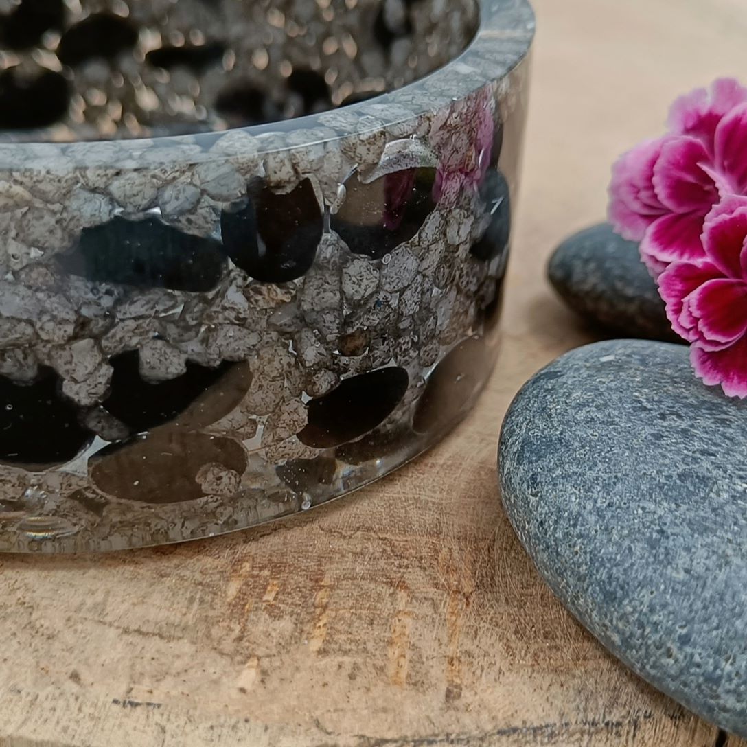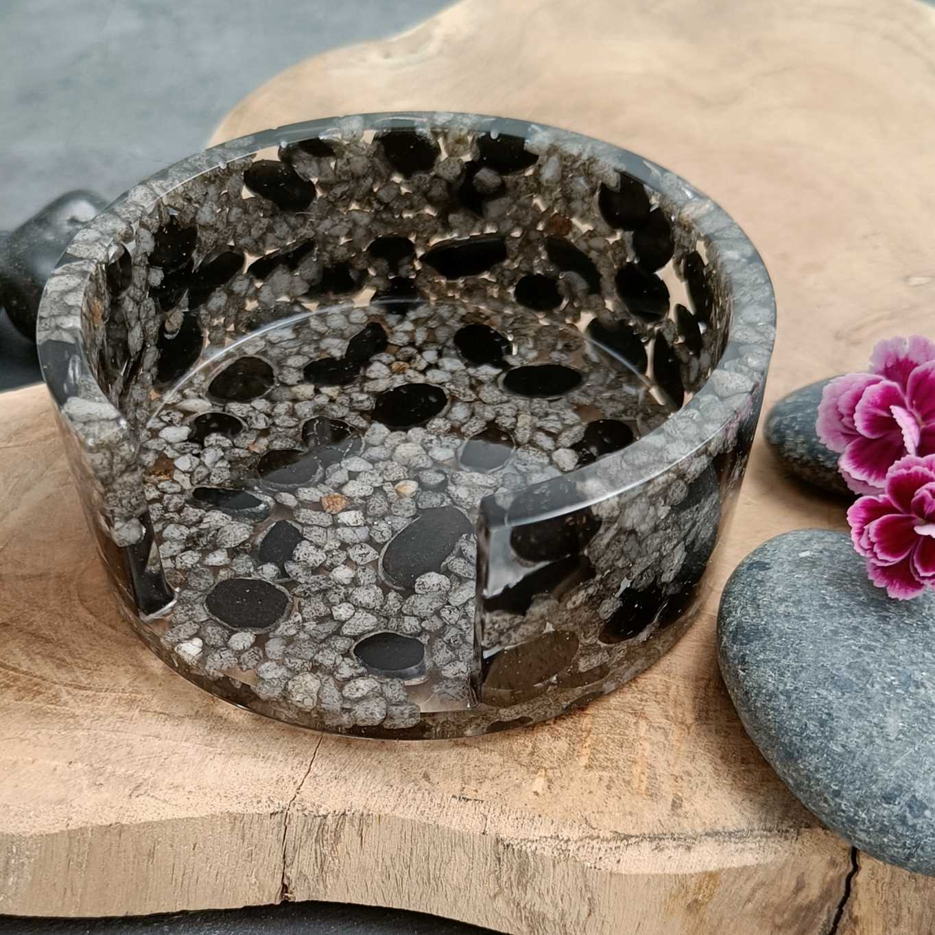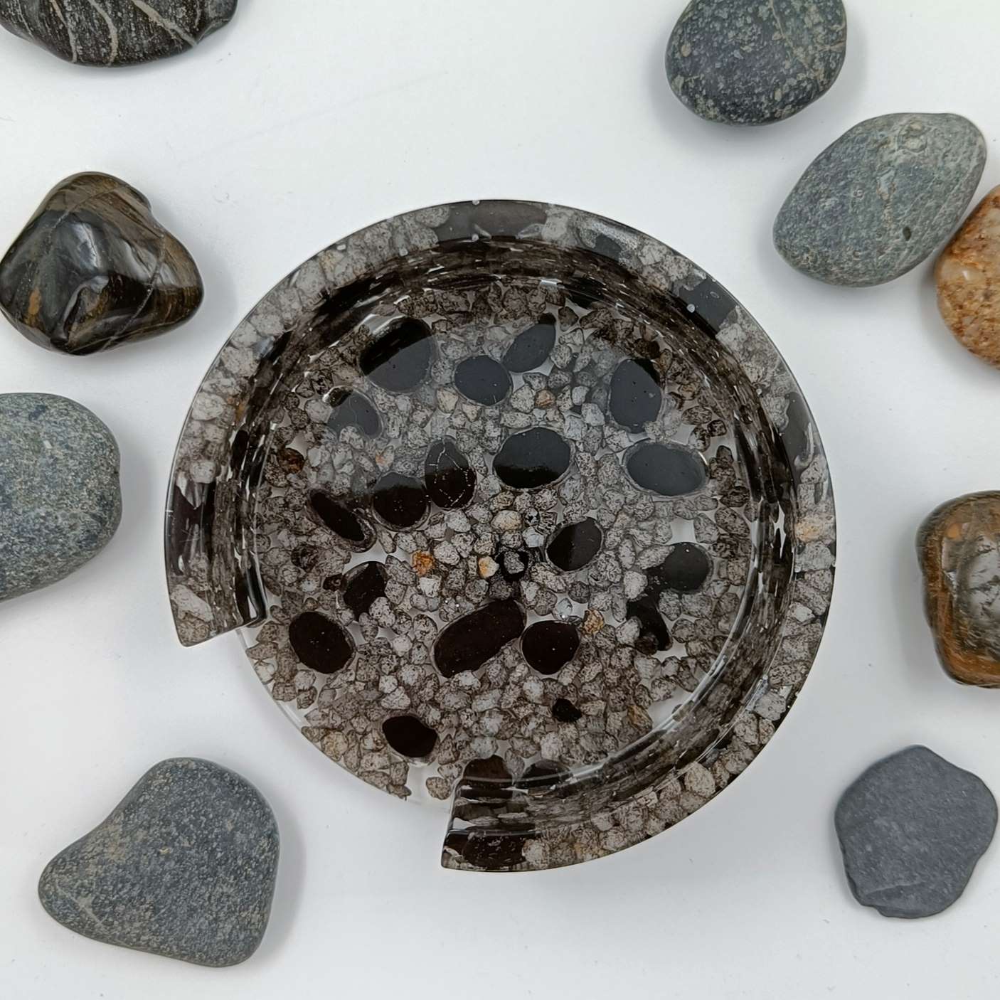 Maokan lasinalustelineissä käytetään vaihtelevasti erilaisia kiviä ja rouheita, sävyjä tummasta vaaleaan sekä kimaltelevia yksityiskohtia, jotka yhdistetään laadukkaan hartsin avulla upeaksi kiiltäväksi lopputulokseksi. Jokaisen lasinalusen pohjista löytyy pienet, kirkkaat silikonitassut, jotka ehkäisevät telineen liukumista pöytien ja tasojen päällä. Maokan pyöreään lasinalustelineeseen mahtuu kolmesta neljään lasinalusta säilytykseen.