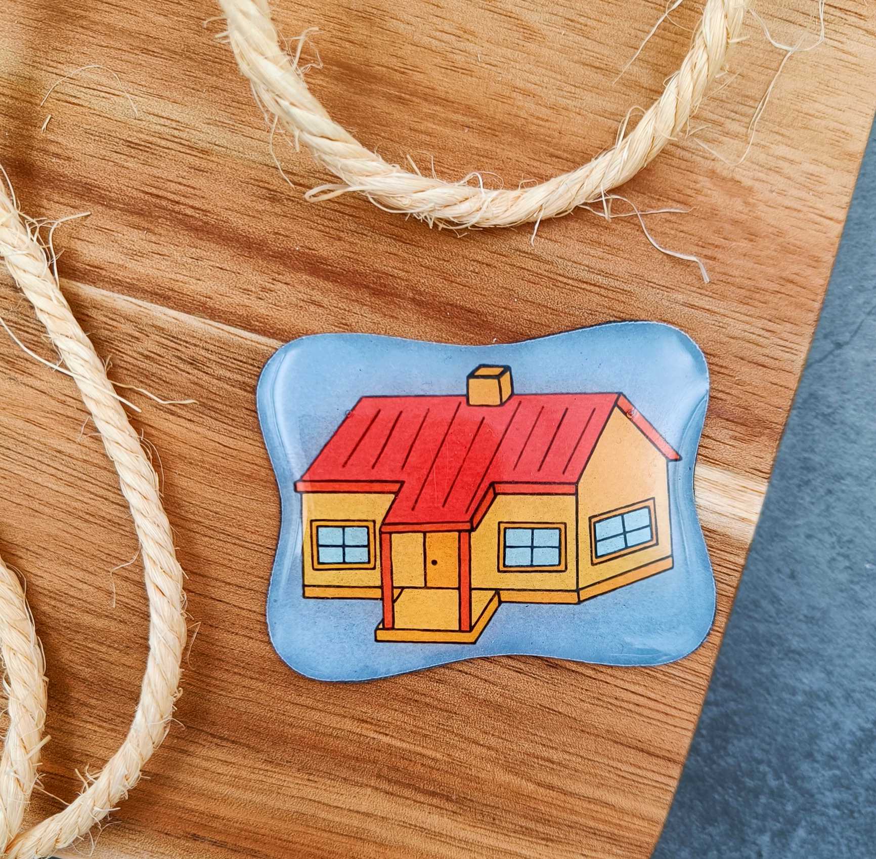 Tämän omakotitalon lisäksi vaihtoehtoina löytyy modernimman näköinen omakotitalo, kerrostalo ja rivitalo. Valitse talo, joka kuvastaa teidän perheen, sukulaisen tai lapsen ystävän asumismuotoa ja hyödynnä kuvaa kertomaan vaikkapa perheenjäsenen kotiintulosta tai kyläilyreissusta jonkun luona. Kuvaa voi yhdistää eri MiniPom hahmojen kanssa kulloisenkin tarpeen mukaan.
